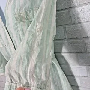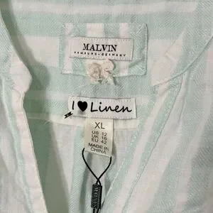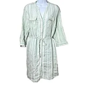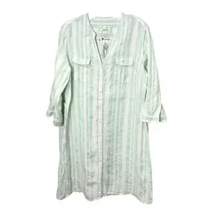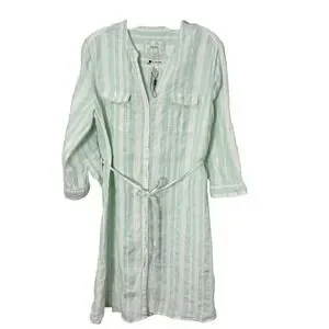 New Linen Pastel Striped Shirt Dress XL Coastal Beachy Old Money Preppy Minimal