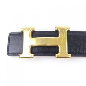 This is an authentic Hermès Constance belt in black. The belt features a sleek, minimalist design with a signature "H" buckle in gleaming gold-tone hardware.