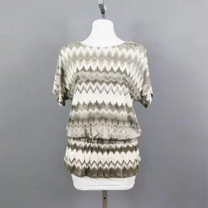 Features: gray, white, geometric print, short sleeve, elastic waist