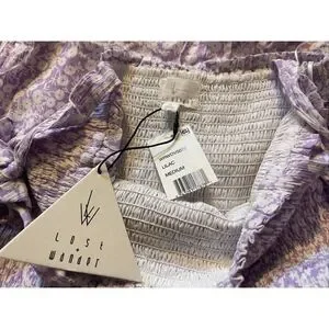 Lost + Wander Women's Lavender Floral Smocked Crop Ruffle Linen Jumpsuit Women’s