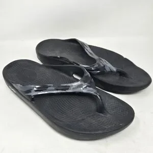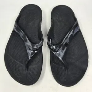 OOFOS Oolala Black Gray Camo Women’s Flip Flop Thong Recovery Sandals Sz 7