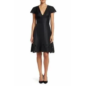 Prabal Gurung - Black Beaded Trim Cap Sleeve Dress Sz 2