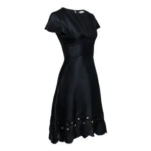 Get ready to stun in this black fit flare dress by Prabal Gurung. Featuring beautiful beading on the cap sleeves and hem, this dress is perfect for any special occasion. Complete the look with a sleek clutch and pointed toe pumps.