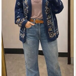 Embroidered natural fiber Floral Knit grandma sweater Cardigan