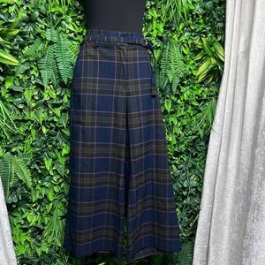 Ann Taylor Dress Pants Womens Size 6 Navy Blue Plaid Wide Leg Crop Belted 3758