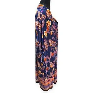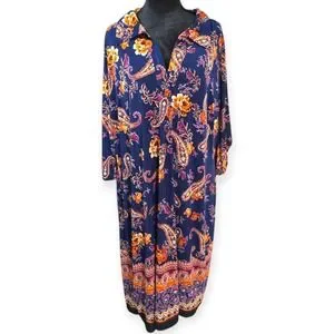 Mlle Gabrielle 2X Paisley Floral Print Long Sleeve Midi Dress Casual Boho