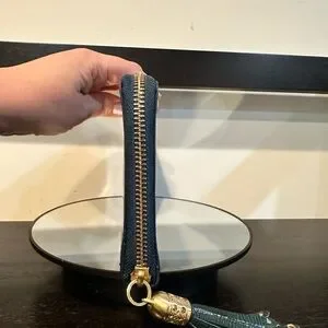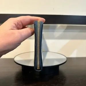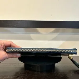 Stylish and functional Cole Haan Travel Clutch from the Voyage Collection in a stunning Moroccan blue color. This large zip-around wallet is perfect for travel or everyday use, offering ample space for cards, cash, and essentials in a sleek, polished design.