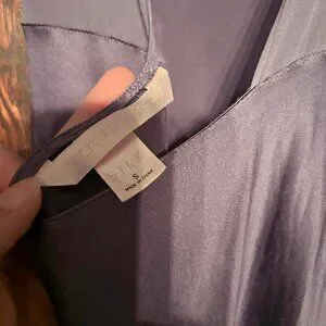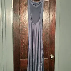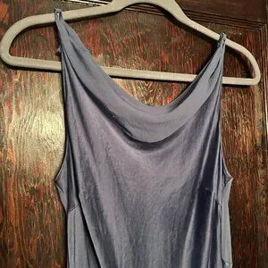 This vintage Victoria's Secret 100% silk gown from May 2001 is absolutely stunning. Deep blue color with a sheer cowl neckline and the most gorgeous open back that comes to a v at the lower back, just like the yellow dress Kate Hudson wears in How To Lose A Guy in 10 Days. Peek-a-boo side slit adds the perfect touch. I'm 5'2", 135 lbs, 36C and this fits me in the most beautiful way. It's everything you'd want from a vintage VS gown. The 100% silk drapes perfectly and the color is amazing.