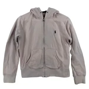 Polo Ralph Lauren Hoodie Sweatshirt Girls Medium Pink Full Zip Fleece Pony