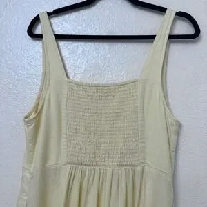 Old Navy Butter Yellow Linen Blend Smocked Back Midi Dress with Pockets Large