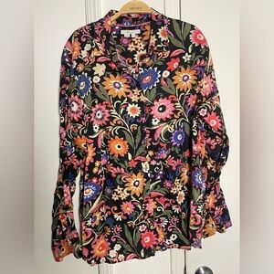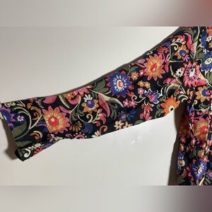 Boden New Linen Shirt in Black Gardenia Pop Floral Relaxed Fit