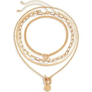 Gold Layered Stack Necklace Set for Women, Retro Thick Cuban Chain Coin Medallio
