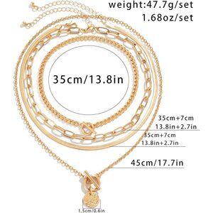 1. The four-piece Gold necklace set contains four adjustable necklaces of different styles, including paper clip chain, herringbone chain, beaded chain and Cuban chain, etc., with stylish design and novel style, you can wear it alone or in multiple layers.