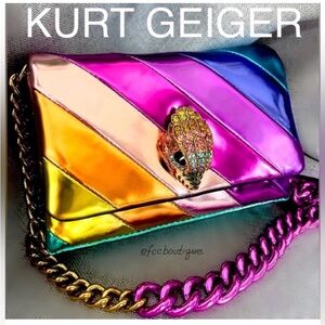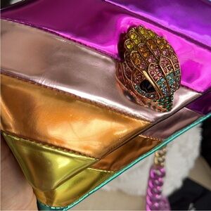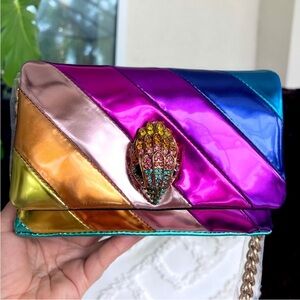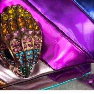 KURT GEIGER Liquid Metallic Patent RAINBOW Crossbody Clutch LARGE EAGLE HEAD