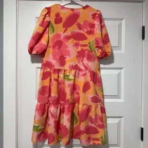 Embrace elegance with this chic floral mini dress. The vibrant pink and orange hues create a stunning look, perfect for any occasion.