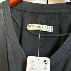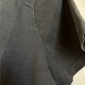 Simple black crewneck tee with short sleeves. Soft-looking knit fabric. Casual, versatile silhouette. Easy to pair with jeans or layers.