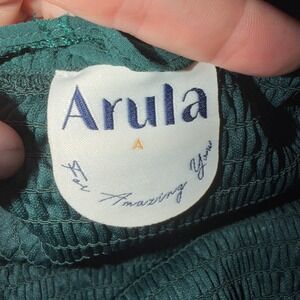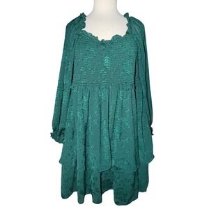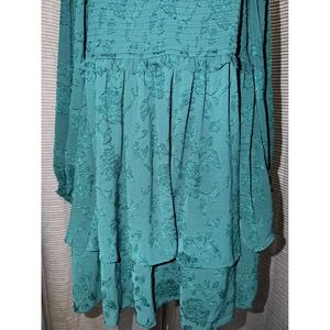 Arula Ellenie-P Green Floral Burnout Smocked Tiered Mini Dress Womens A 1X 14 G2