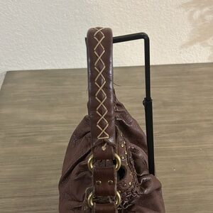 Lucky Brand Brown Leather Hobo Bag with Stud Accents