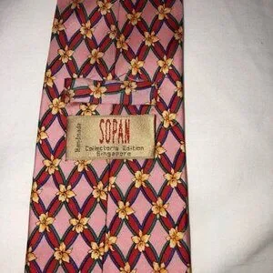 Vintage mens tie handmade in Singapore. Pink floral pattern 100% silk. Great condition. Made in Singapore