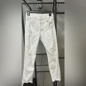 MOTHER Superior The Tomcat Ankle jeans in the color Quite Innocent. Distressed style with frayed ankle. Size 26. Some small blemishes that appear in the pictures in the listing. Perfect for a casual yet trendy look.