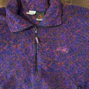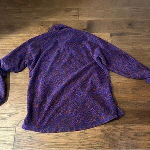 A deep purple fleece top with a quarter-zip neckline and scattered light speckled designs, offering a comfortable and casual fit. Missing center drawstring but still comfy and cute!