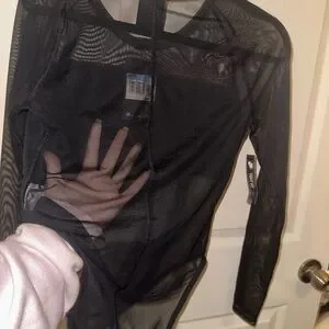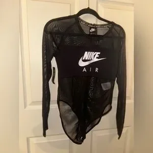NWT Nike Women's Black Logo front Mesh long sleeve bodysuit streetwear M sporty