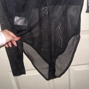 Nike Women's Black Logo front Mesh long sleeve bodysuit