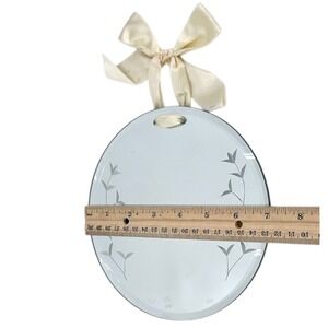 Vintage Round Hanging Mirror 7" Etched Floral Glass Satin Ribbon Cottagecore