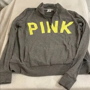 Victoria's Secret PINK Gray Pullover with Navy Logo Trim
