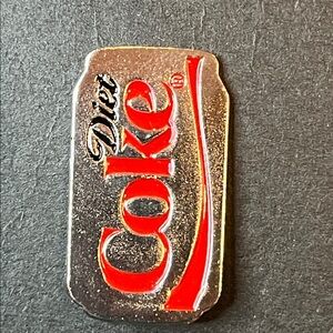 Classic Diet Coke enamel brooch featuring bold red and silver tones. A branded design that adds a playful, retro touch to jackets, bags, or hats. Lightweight and easy to pin for everyday styling.
