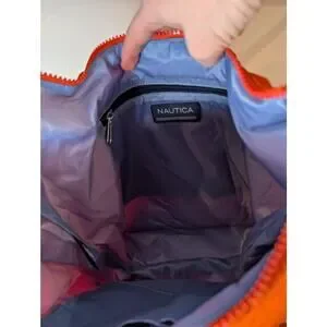 Brand new with tags Nautica crossbody hobo bag in vibrant burnt orange with navy contrast strap. Features multiple zip pockets for organization, adjustable crossbody strap, and lightweight nylon construction. Perfect for hands-free travel, shopping, or everyday use. Style name "Hidden Treasure" with nautical rope detail zipper pulls.