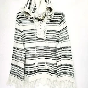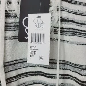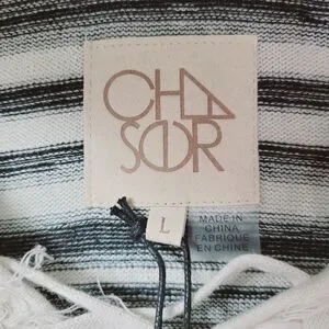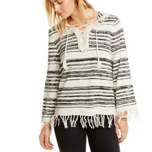 Chaser Linen Blend Fringe Trim Hooded Sweater sz Large