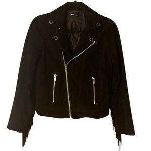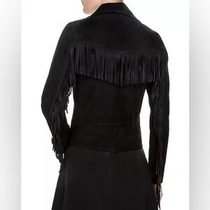 The Kooples Fringed Goat Leather Moto Jacket black suede