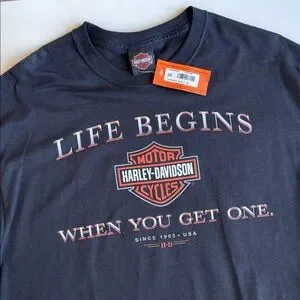 Harley-Davidson Life Begins When You Get One Made In USA Eagle Nest Biker Motorcycle Black Short Sleeve Tshirt Mens Size Large 2009