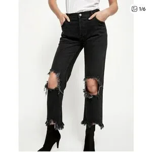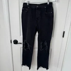 Free People Maggie Washed Black High-Rise Distressed straight Jeans 26