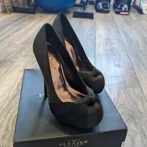 Pleaser Black Satin Heels Gorgeous 28 Platform Stiletto Pumps