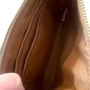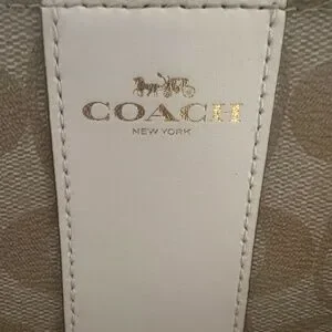 Features Coach’s iconic signature coated canvas with light chalk leather trim and gold-tone hardware. Perfect grab-and-go wristlet for essentials—fits phone, cards, cash, and keys.