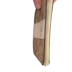 NWT Coach Signature Corner Zip Wristlet in classic khaki/chalk colorway ✨