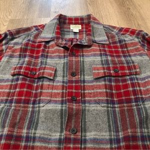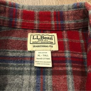 L.L. Bean 1933 Signature Chamois Cloth Plaid Button Gray Red Fit Men’s XL Tall