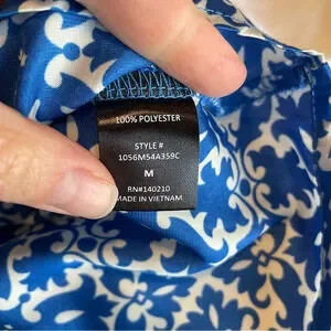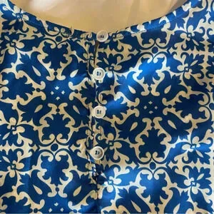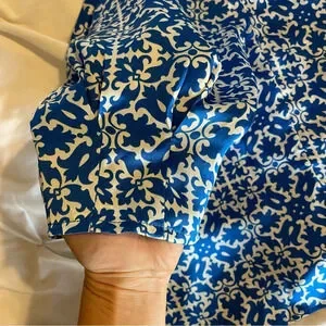 Co Til Co Women’s Printed Blue White Flowy Top Shirt 3/4 length sleeve