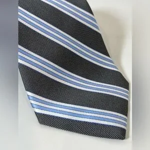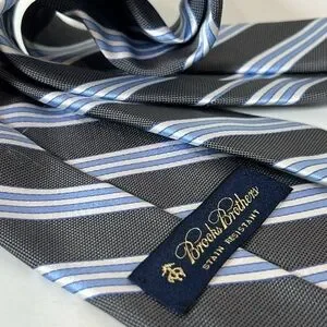 Brooks Brothers Stain Resistant Black and Light Blue Striped Tie Professional