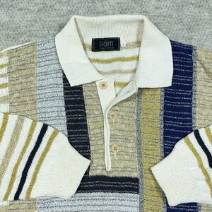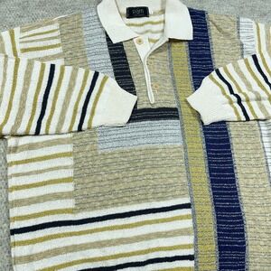 Vintage Grandpa Sweater Men Large Green Blue Geometric Colorblock Collared Italy