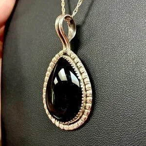Navajo 925 Sterling Silver & Onyx: Earrings & Necklace Set