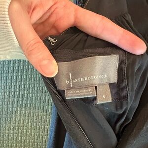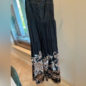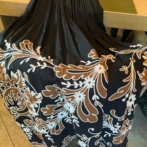 Anthropologie Black Midi Dress with Brown Floral Border