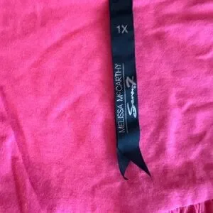 Beautiful, flattering, and super comfortable empire waist and dropped sides detail on the bottom, Melissa McCarthy for Seven, 1x bright pink with embellishment that looks woven but is printed in a raised fashion.