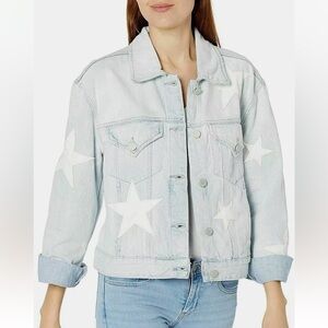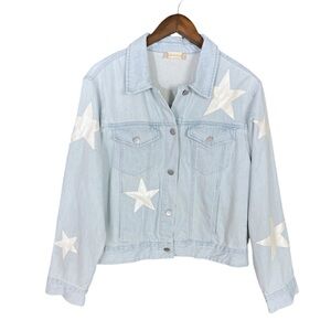 Altard State | Faux Leather Star Embellished Light Wash Denim Jacket Pockets