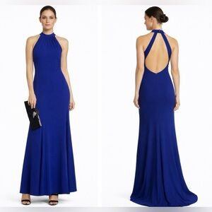 This pretty dress is from Xscape in a misses size 10. Solid royal blue in color. Fully lined. Made of polyester. Has a back zipper.