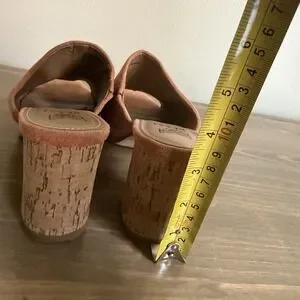 Beast Fashion Womens 7 Tan Brown Faux Suede Peep Toe Slip On Cork Heels Sandals