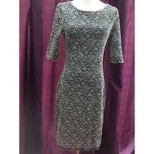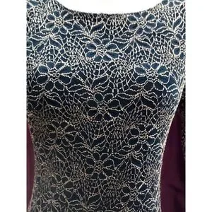 The Candalite Women's Navy and Gold Gown is a stunning formal dress perfect for weddings, parties, or cocktail events. This knee-length dress features a V-neckline, half sleeves with puff sleeves, and a pullover closure. The dress is adorned with embroidered accents and has a flattering sheath style. Made from a blend of polyester, nylon, and spandex, this dress offers a slimming and stretchy fit, making it suitable for various occasions throughout the year. The navy blue color and floral pattern give off a sophisticated and elegant vibe, making it a standout choice for any special event.