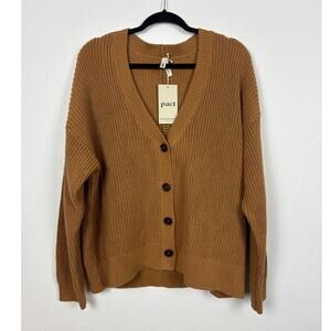 NWT Pact Luxe Knit Cropped Cardigan Organic Cotton Camel V Button Front XL